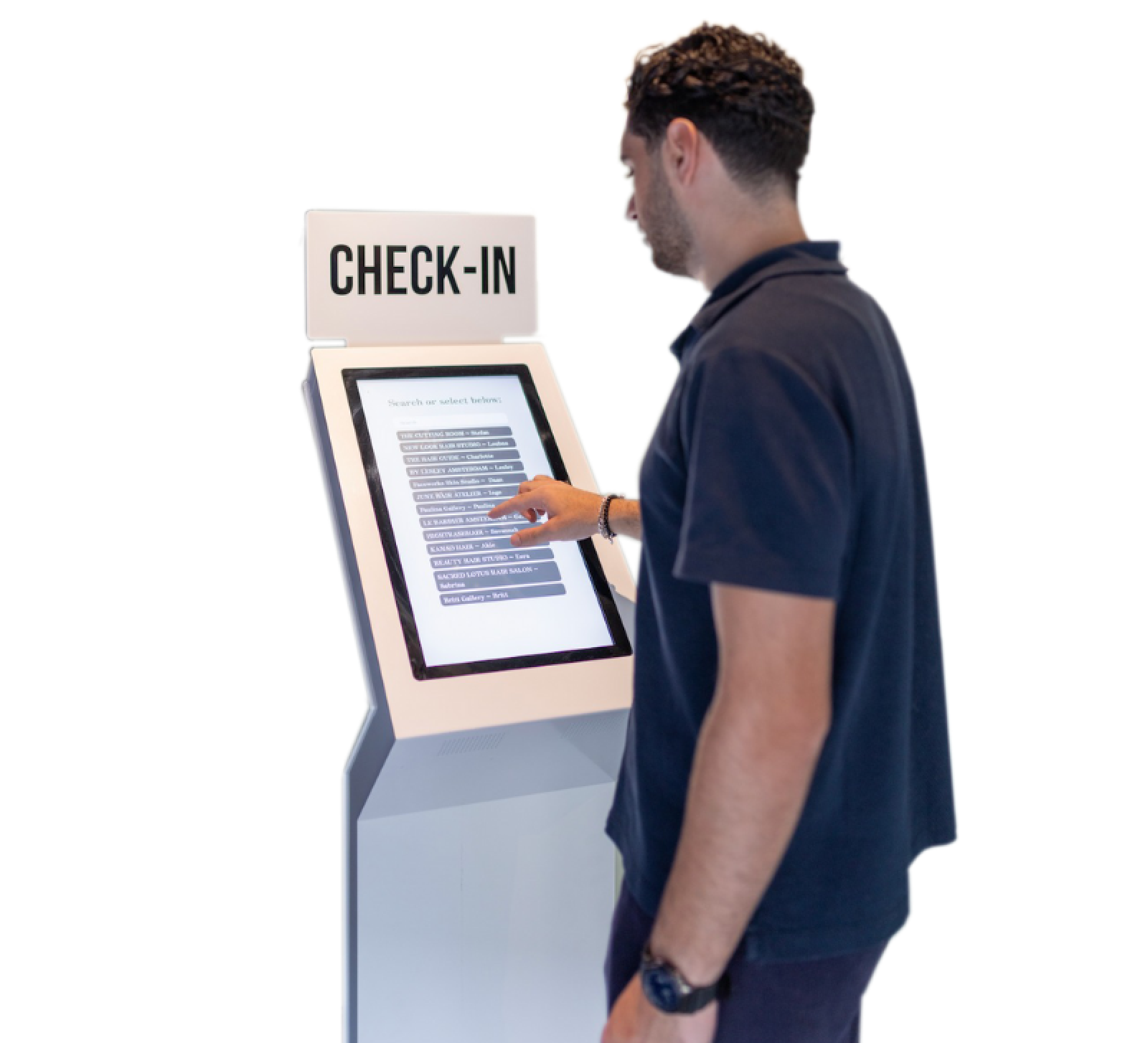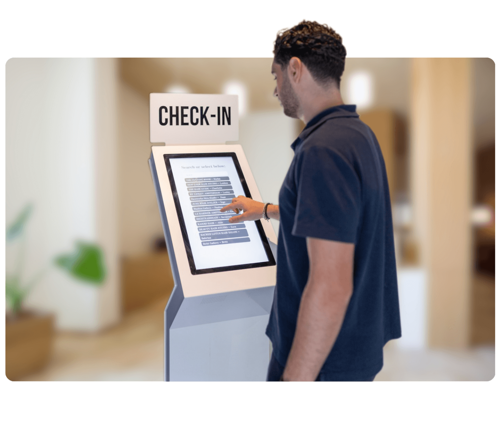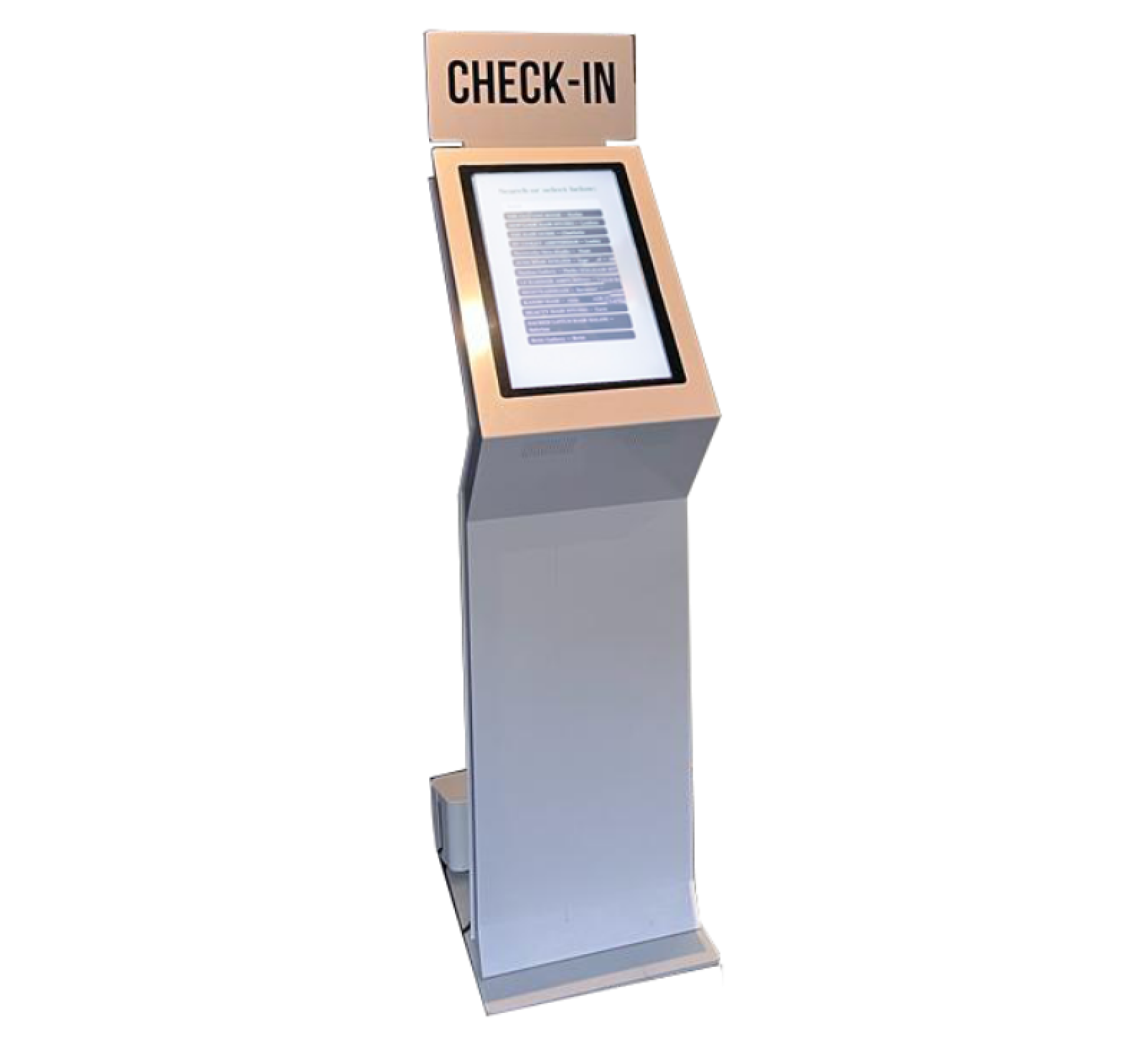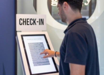 Reception kiosk in your own house style and flexible settings for every type of visitor.