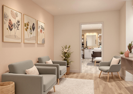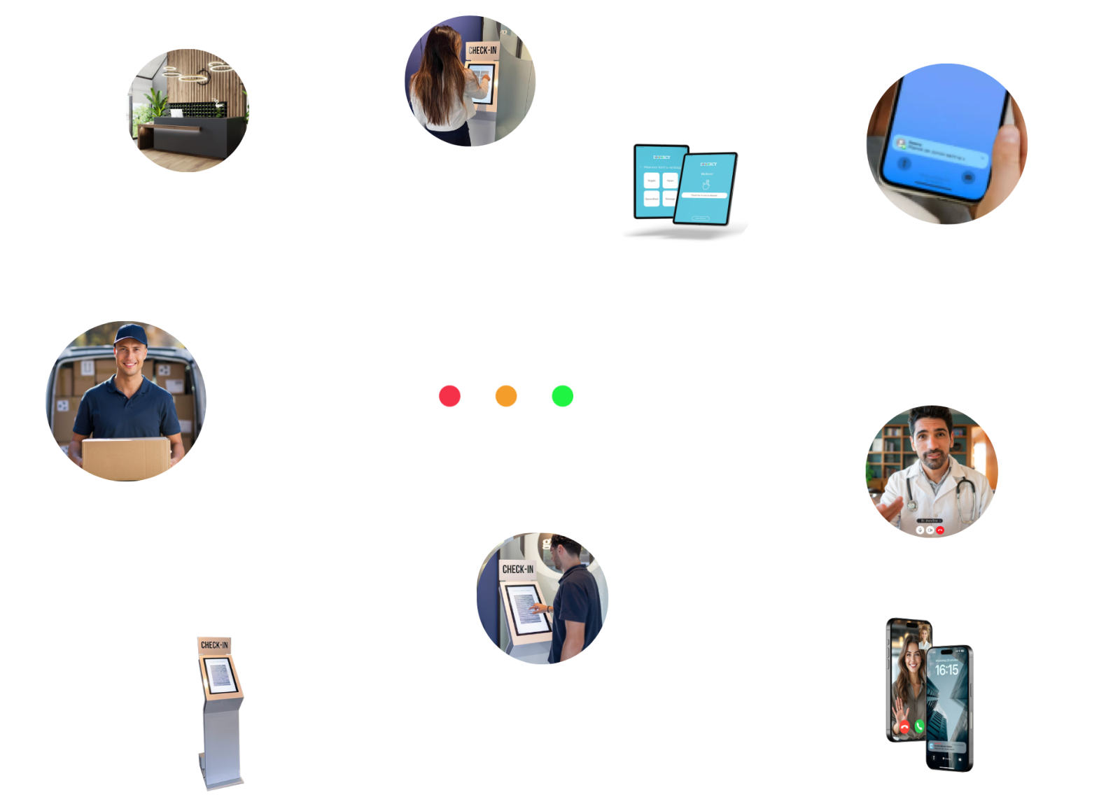 Visitors check in at the kiosk and are then guided to their appointment. The waiting room is automatically prepared for guests (e.g., with lighting and music), while the receptionist immediately receives a notification via push message, text message, or critical notification.