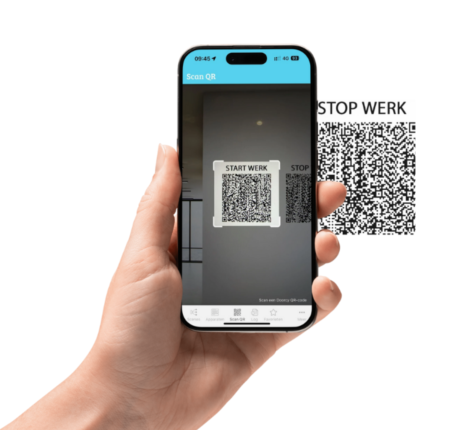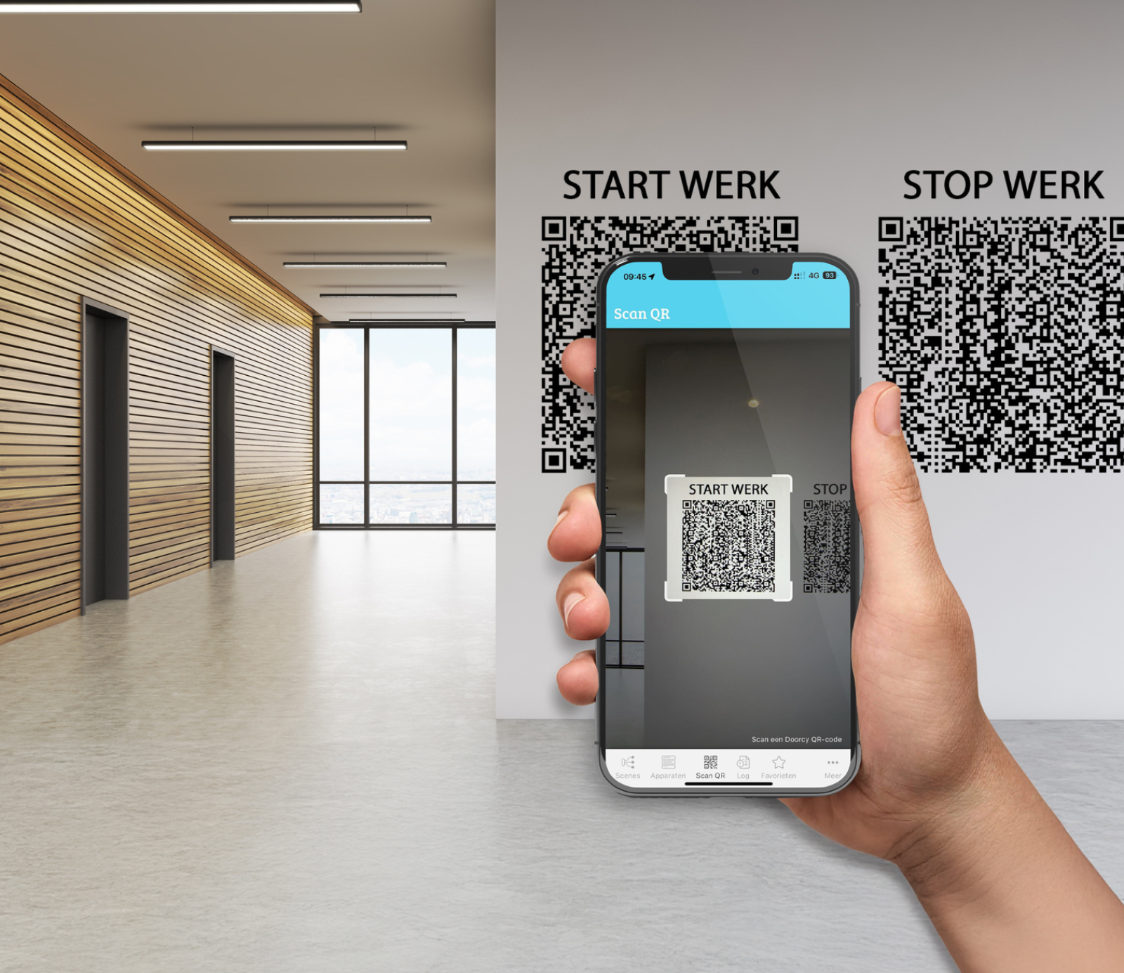 Medewerkers kunnen eenvoudig starten, pauzeren en stoppen door een QR-code te scannen of via de app.