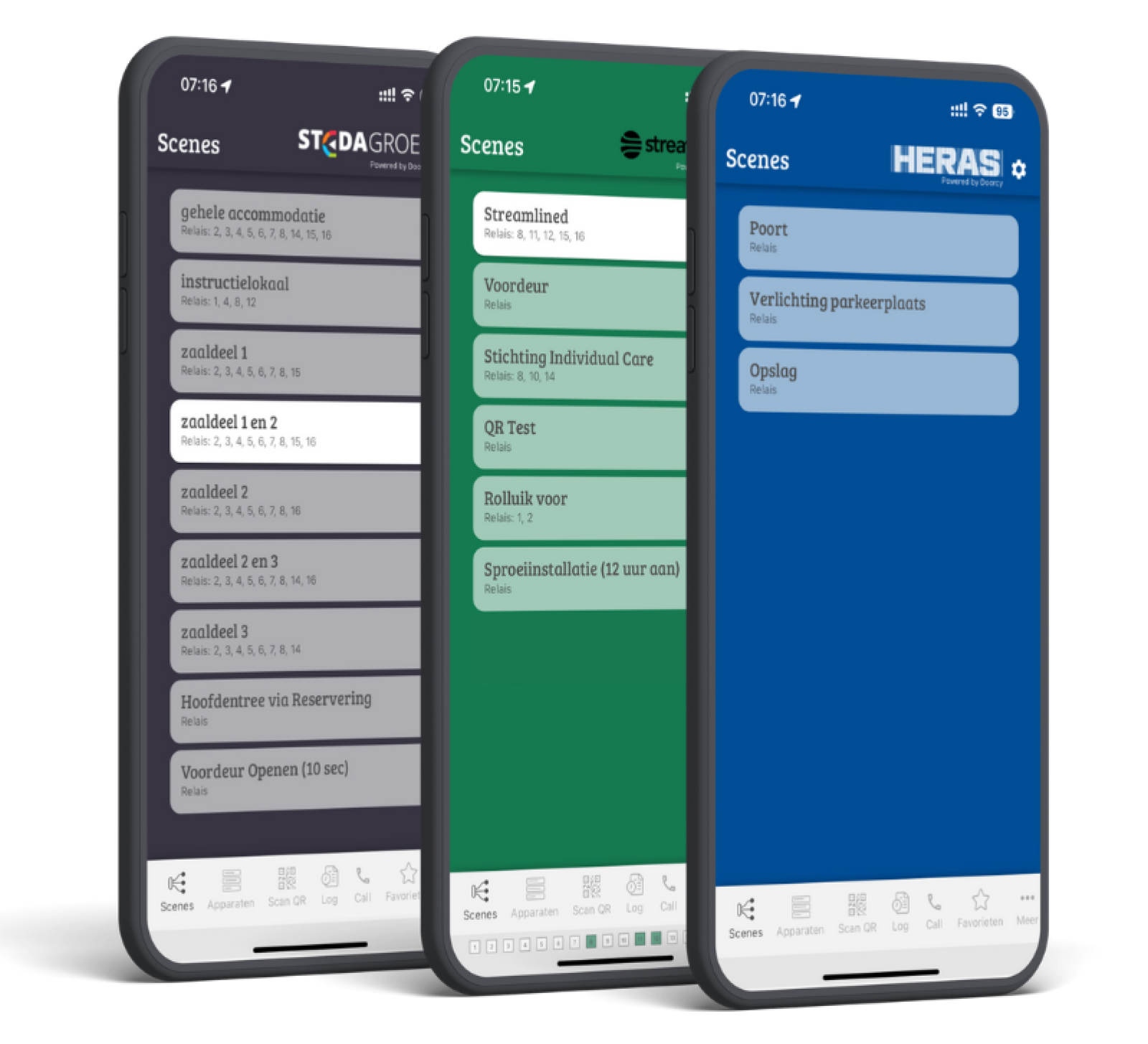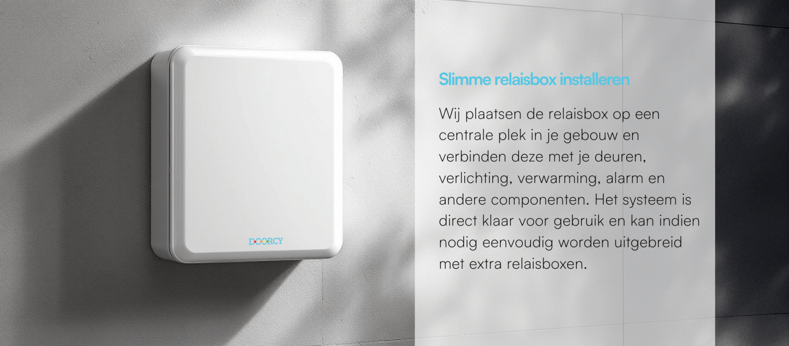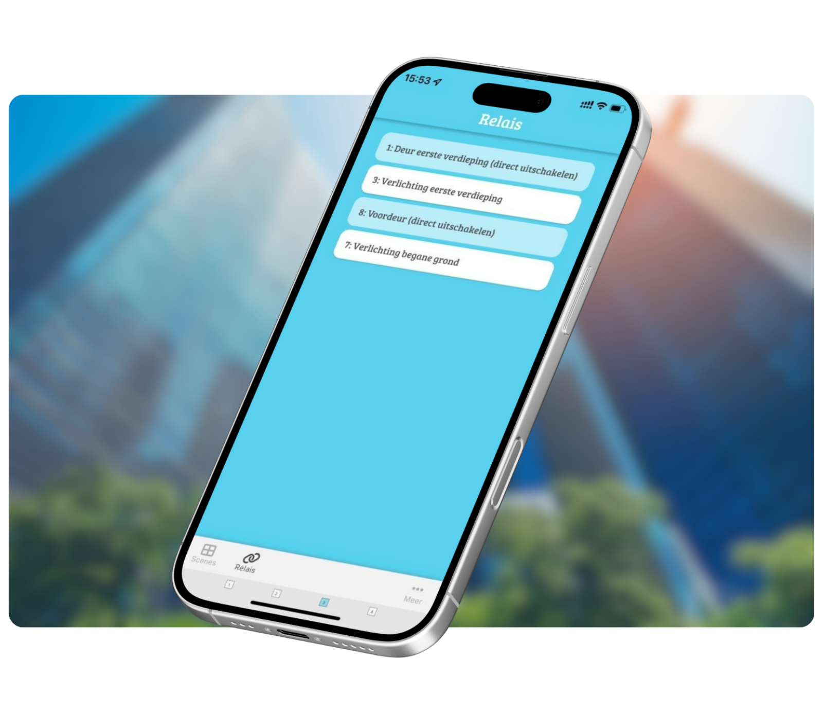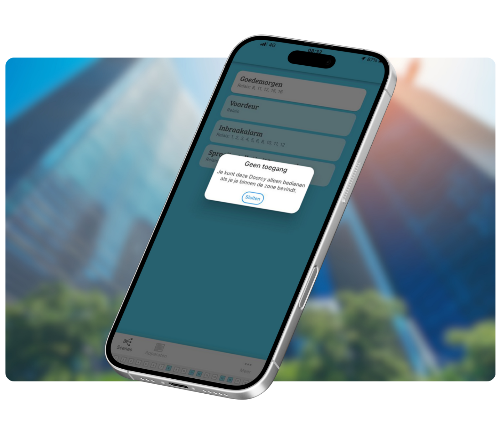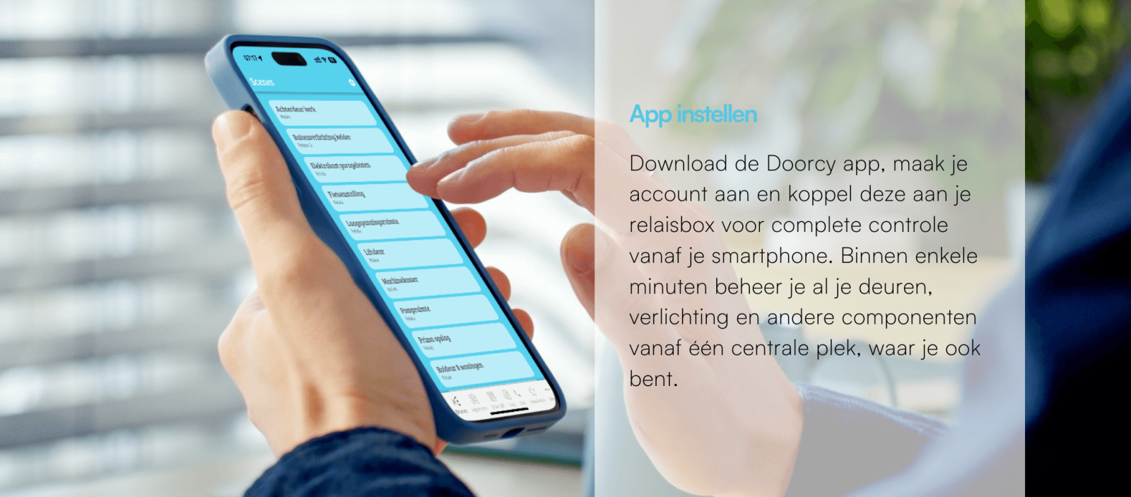 The combination of the Doorcy relay box and Doorcy app enables input-controlled switching. Use the app to specify which scene or device should be started or switched off.