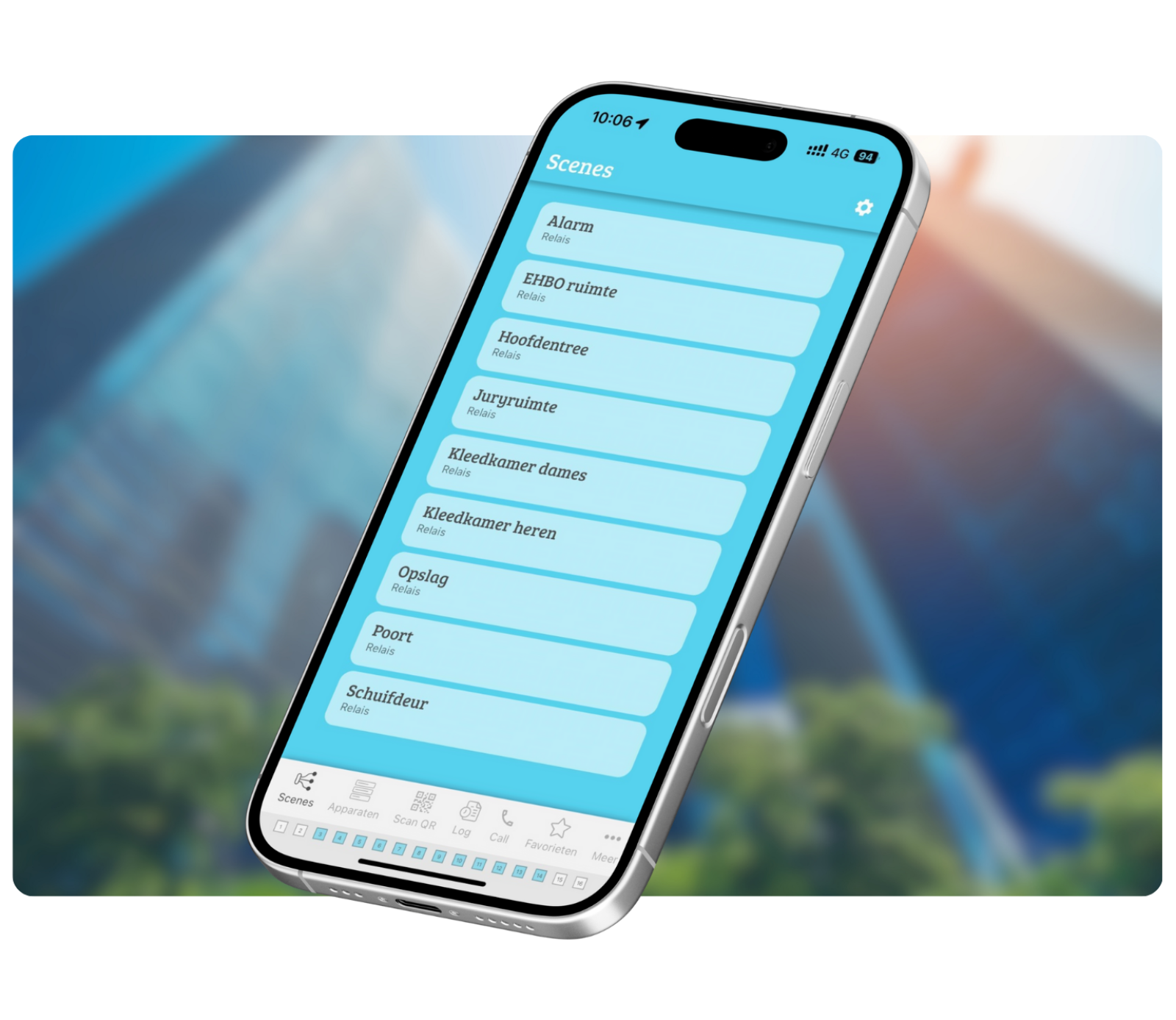 Control devices individually or in groups via the app, with real-time status insight. Start scenes with a single push of a button and connect an unlimited number of boxes for larger locations.